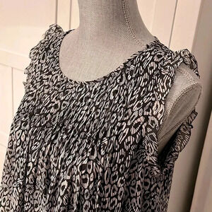 The perfect spring-summer patterned set. The ruffled sleeveless top can be worn tucked into the skirt or worn loose over slim pants.