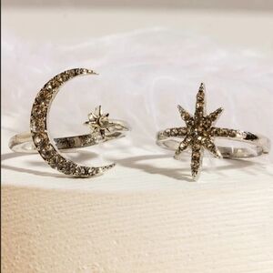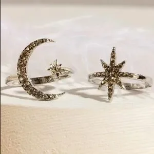 ๐2pcs Rhinestone Decor Moon Decor Ring ๐ ๐ ๐