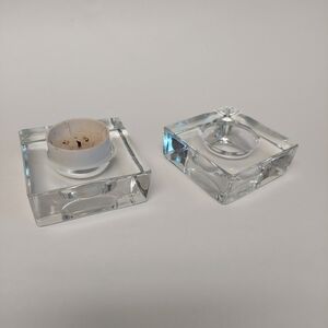 2-piece Heavy Square Glass Votive Holders. Approx 3.5" Square. Approx 1" tall.