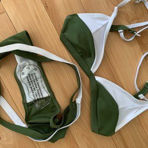 Brand new, never worn cute multi-colour 2 piece bikini with adjustable straps, cheeky