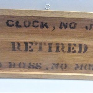 One states " Retired - No Clock, No Job, No Boss, No Money"
