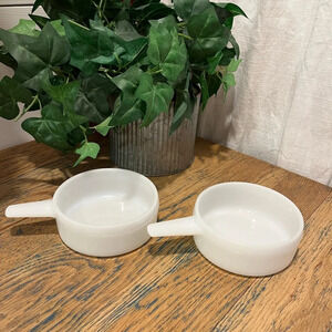 2x Vintage 1960s Jeannette Glasbake oven dish in white milk glass,
