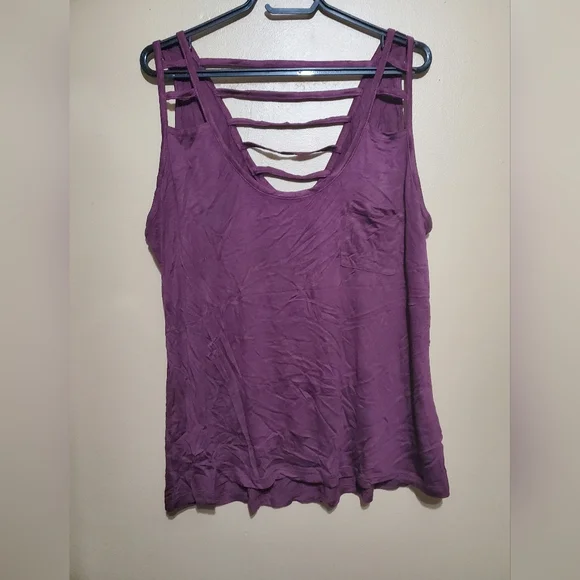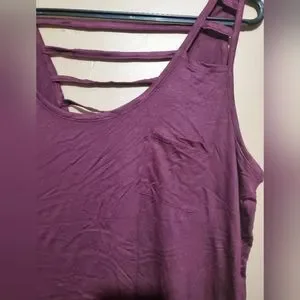 red tank top with pocket on front. A little wrinkled, but clean and snag free. Comes from a clean smoke free home.