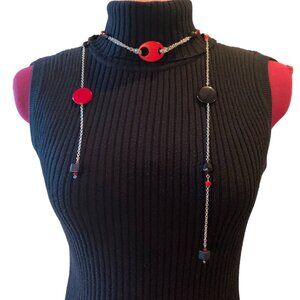 2x18$ 🦃 🍂HANDMADE - Red & Black Beads chains necklace - Collar + 2 drop chains