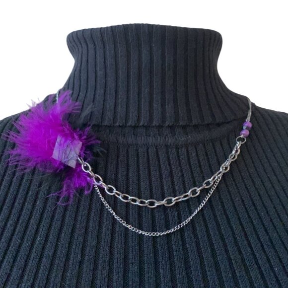 2x25$ 🐿 🍁 CREATION Asymmetric short necklace Tile & feather beads Purple Black