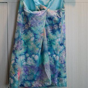 Fancy cross-over straps, built-in bra, tie-dyed look - feel and look your best at the gym or on the street in this tank. Sun's out: Guns out! Show off those shoulders.