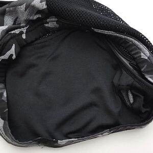 Excellent pre-owned condition, black grey camo high neck racerback sports bra with mesh neckline and back detailing, size Medium.