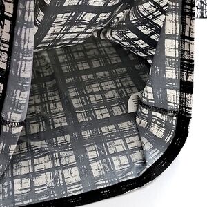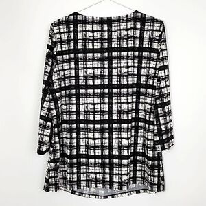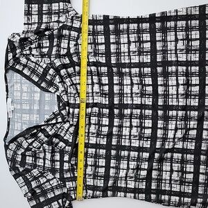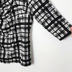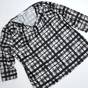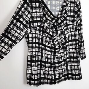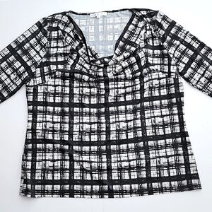 Excellent pre-owned condition, Cleo top in black and white plaid pattern with cowl neckline with 3/4 length sleeves in a stretchy and lightweight material, size XXL.