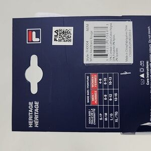 New with tags, Fila Heritage unisex premium quality cotton socks. Size medium.