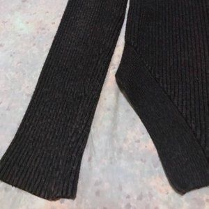 Zara Coal Black Ribbed Mock Neck Split Hem Sweater