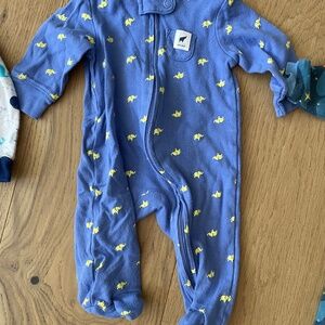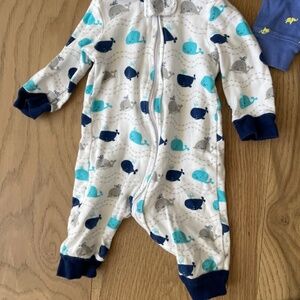 3) BABY BOY 3 month SLEEPERS / pajamas / onesies
