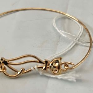 3 BRACELETS, GOLD TONE WIRE, NEW, WITH "LOVE" WORD OR ANCHOR OR CAT, TAGS ON,