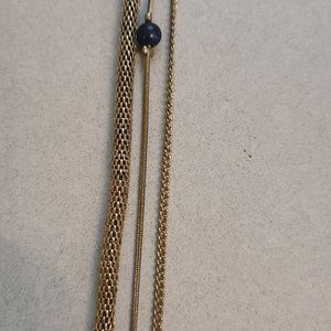 3 Chain Necklace with Blue Bead Accents