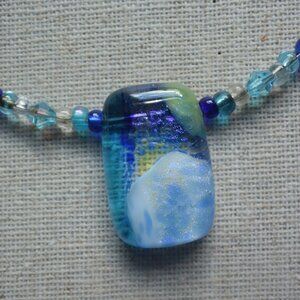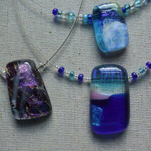 3 Dichroic Fused Glass Pendant Choker Necklaces Handcrafted