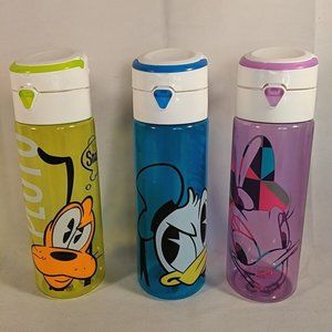 3 Disney Store Colorful Water Bottles Plastic BPA Free Pluto Donald Daisy Travel