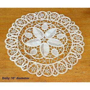 3 Doilies Doily Crocheted Doily White & Tan Vintage Doilies V21