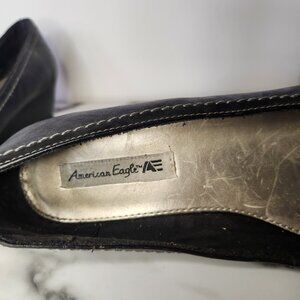 🎊3 FOR $10 AMERICAN EAGLE WOMENS SIZE 8W BLACK WEDGE HEELS WITH BOW ON TOE
