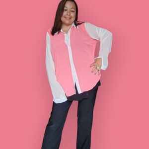 🎊3 FOR $10 BLUENOTES WOMENS LARGE PINK AND WHITE BUTTON DOWN BLOUSE