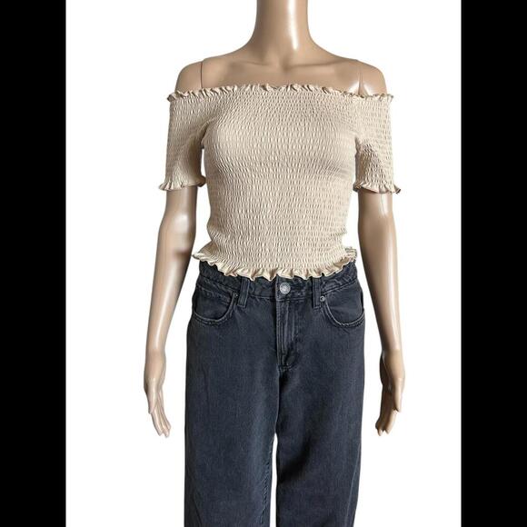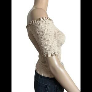 Step out in style with this chic H&M off-shoulder smocked top, designed for comfort and flair. The soft beige fabric is versatile, pairing effortlessly with jeans or skirts. Key features include: