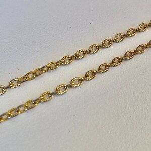 3 for $25, just add to a bundle with two other 3/$25 items and I will send the offer:) Gold coloured long textured necklace chain, measures 12 inches long when worn, 24 inches total length. Great vintage condition (from at least 90s), cat friendly, nonsmoking home.