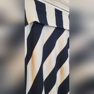 Stylish skater skirt with bold navy and white stripes. Perfect for casual outings. Waistband can be rolled up or down to adjust length of skirt.