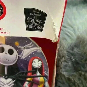 2 Christmas Jack Skellington SwingsOrnaments and 1 Jack and Sally Light-UP Christmas Ornament. The boxes are beat up but ornaments are in excellent condition