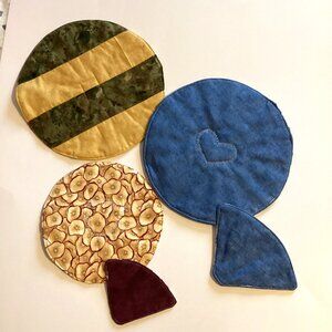 3 Handmade Round Circle Mug Mats + Coasters Quilted Table Linens Household