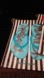 - Brown & White coated canvas pouch with Flip Flops on it, zippered with HB charm 12" x 9".