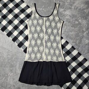 ♥︎Lace Flounce-Neck Color Block Mini Dress