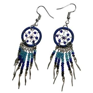 3 PAIRS of Dream Catcher Earrings Dangle Drop Refurbished Navy Pink Ivory Beaded