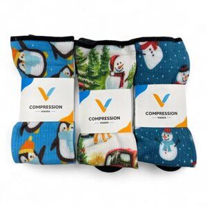 3 Pair Viasox Diabetic Compression Knee High Socks Men's Women's XL Christmas