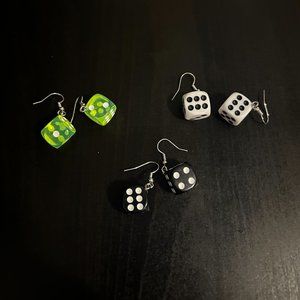 3 pairs of multicolored dice drop earrings, brand new never worn.