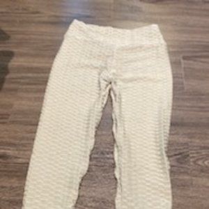 1 pair of black bombutt leggings, size small. 1 pair of white bombutt leggings, size small. 1 pair of silver bombutt leggings, size small. 17$ each.