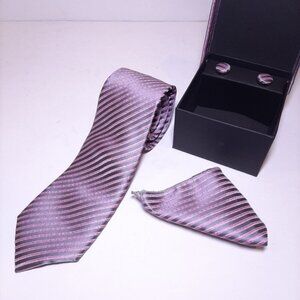 3 Pc Boxed Gift Tie Set Coordinated Print Cuff Links Pocket Square