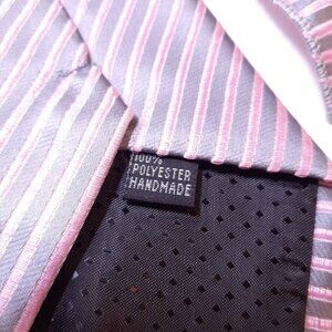 Matching striped print on tie, cuff links, and pocket square (prints may vary slightly between sets).