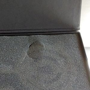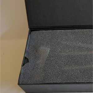 New, never used includes jigger, strainer and opener. Each tool has its own fitted slot. The foam protected on the top is a bit damaged see pictures. The box has a magnetic closure and the top of the box some marks but not too noticeable. See pictures.