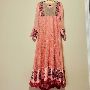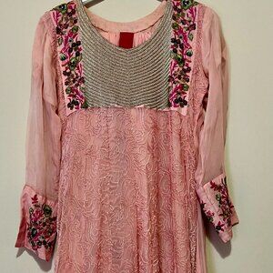 3 Piece Chiffon Fully Embroidered Pink Suit - Pakistani/Indian