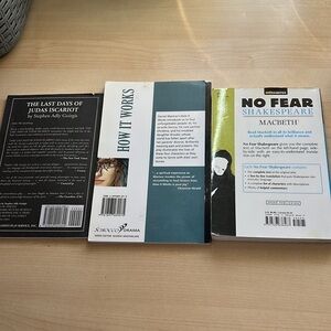 3 Play Books , No Fear Shakespeare,The Last Days of Judas Iscariot,How it Works