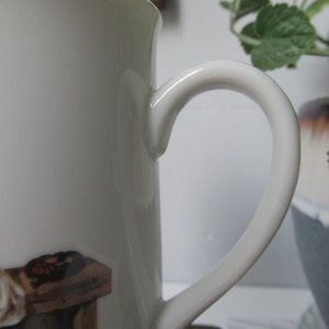 Dimensions. Mug height 4 in (10 cm), diameter 2.75 in (7 cm). Maximum capacity 8 oz (275 ml).