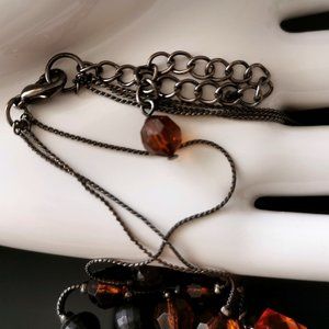 3 Strand Beaded Necklace Amber & Brown Color necklace
