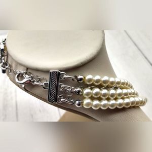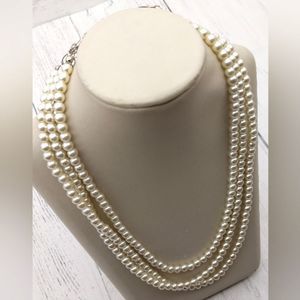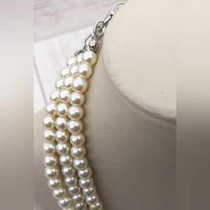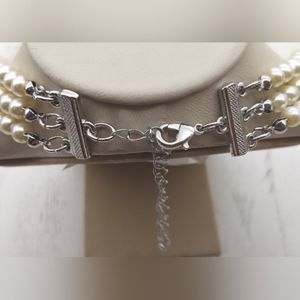 3 Strand Adjustable Faux Pearl Necklace Choker New