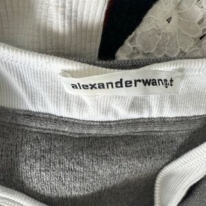 - Alexander Wang in wool. This feels like boiled wool and the white racer neck is sewn into the top making it a one piece.