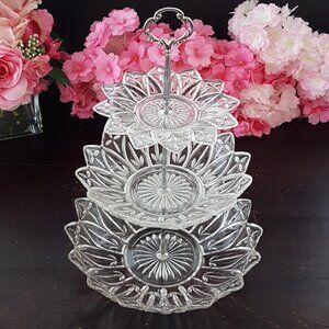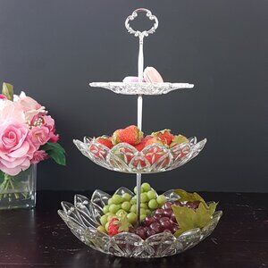3 Tier Federal Glass Petal Flower Cake Stand Tea Party Fruit Bowl Christmas Gift