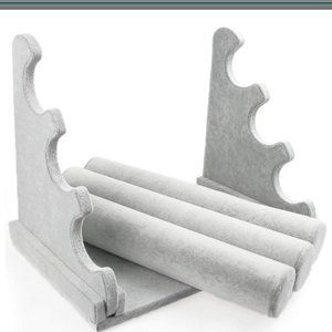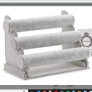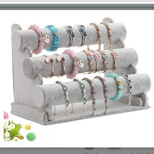 - Featuring a smooth grey velvet material, this T-Bar display is perfect for showing off your jewels or simply storage at home.Holds bracelets, necklaces, watches, bangles, and more!