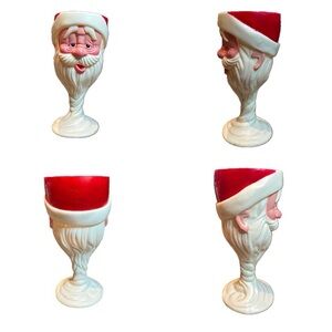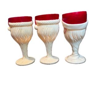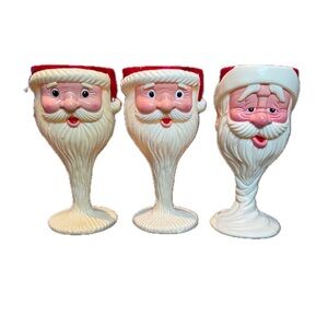 Vintage Christmas tipsy/drunk Santa goblets from Easter Unlimited, lot of 3. Very kitsch and camp. See photos for condition and measurements.