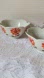 Set of three vintage bowls with vibrant floral pattern. Features orange and red flowers on a white background.