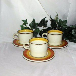 3 Vintage Mikasa Orange Peel Coffee Cups & Saucers Stoneware Japan