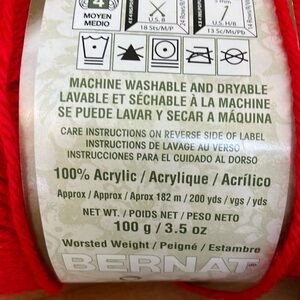 AI description: Create stunning fiber art with Bernat Satin Yarn in vibrant red. Perfect for knitting and crocheting projects.