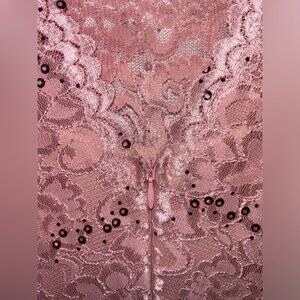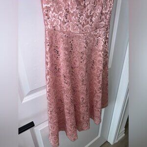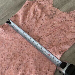 Beautiful pink lace summer dress with pink sequins that sparkle throughout the dress.