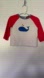 Baby Boden Top, in good condition - light wash wear and faint stain on front near collar (see photos). Long Sleeve baseball style, clasp neckline, whale graphic front. Marked size 12-18 months.